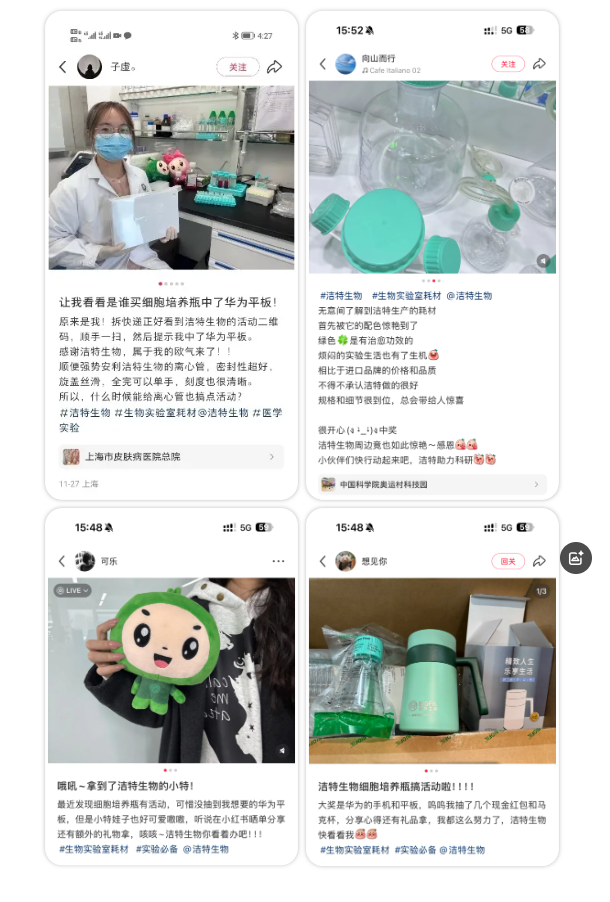 在小紅書關(guān)注“潔特生物”官方賬號(hào);發(fā)布筆記分享您的中獎(jiǎng)心得,帶話題 #生物實(shí)驗(yàn)室耗材 #實(shí)驗(yàn)必備 并@潔特生物。