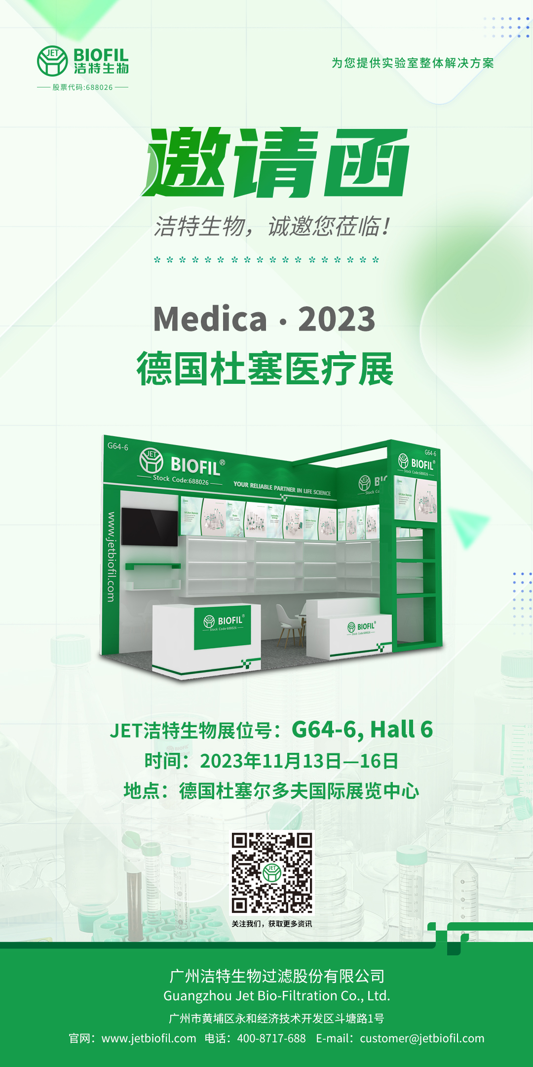 JET潔特生物展位號(hào):G64-6, Hall 6