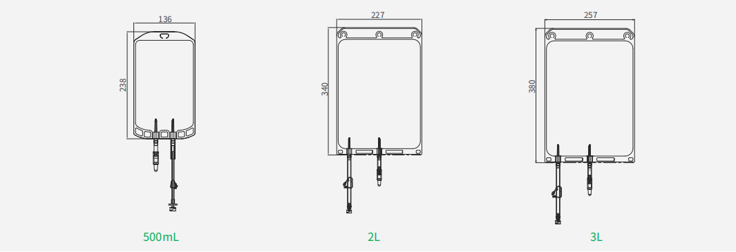 | 最大容量 | 工作容量 | 進(jìn)出液管 | 取樣管 | 個(gè)/袋 | 個(gè)/箱 | ||